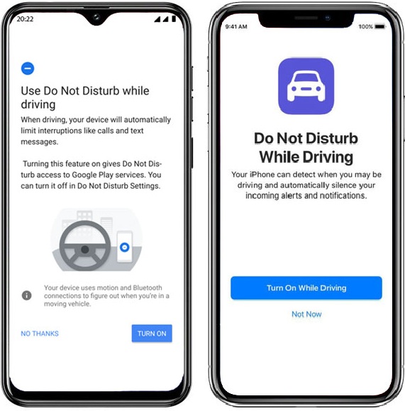 Většina moderních telefonů disponuje funkcí „Do Not Disturb While Driving / Nerušit při řízení“, která automaticky blokuje oznámení a příchozí hovory během pohybu auta (pokud není v handsfree).
