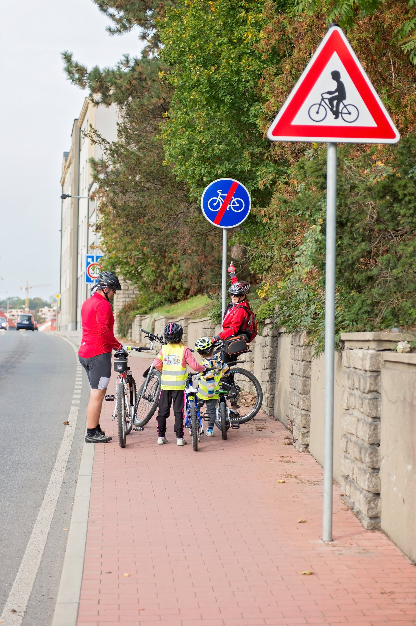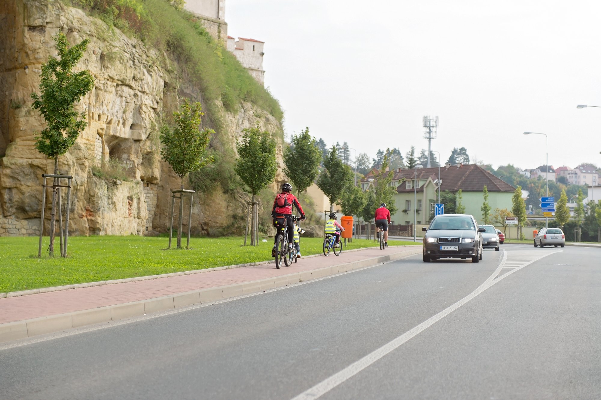 Kubíkovo kolo ještě není tak perfektně vybavené, jako kolo dospěláků. Všichni jsme byli domluveni, že já a Kuba vždy pojedeme mezi taťkou a babičkou, aby na nás při jízdě dohlédli, a aby nás auta v obou směrech hned dobře viděla.